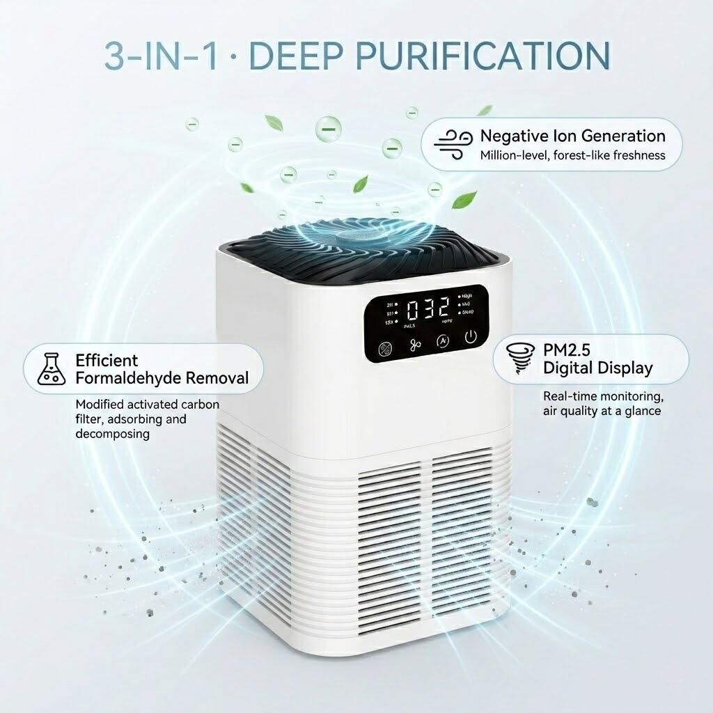 · Real-Time PM2.5 Display: Embedded precision sensor identifies minute particles in air on the go, along with an easily understandable air quality level