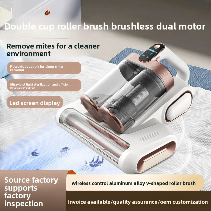 Dual Dust Cup Roller Brush Mite Remover Household Bed Vacuum Cleaner High Suction Brushless Motor Purple Light